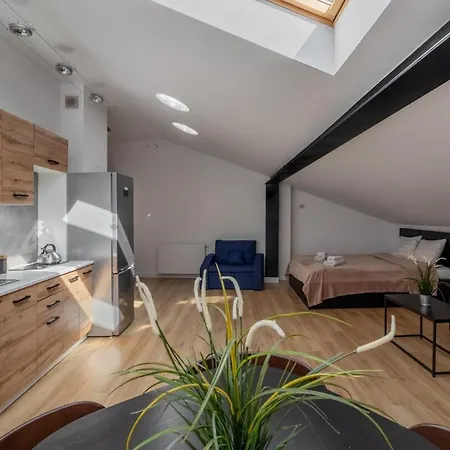 Apartament posiada kuchnię z udogodnieniami, takimi jak lodówka, płyta grzejna i przybory kuchenne. Obiekt noclegowy położony jest kilka kroków od najbliższego przystanku autobusowego - Zabkowska 01.